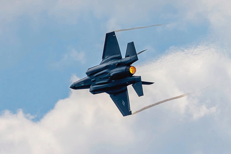 Der Tarnkappenjet F-35 bei einer Flugvorführung auf der Luftfahrtmesse ILA 2024 in Berlin. Das moderne Kampfflugzeug hat sich zum