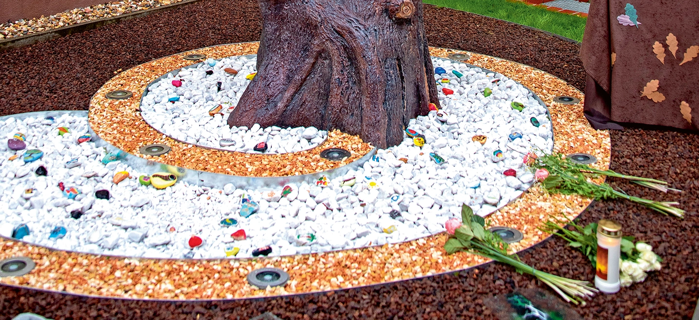 Die beschädigte Tür erinnert an den antisemitischen Anschlag auf die