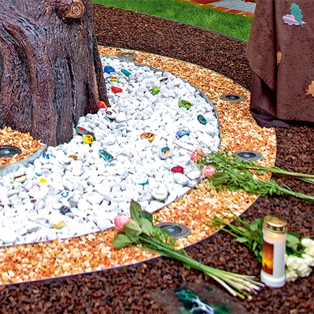 Die beschädigte Tür erinnert an den antisemitischen Anschlag auf die