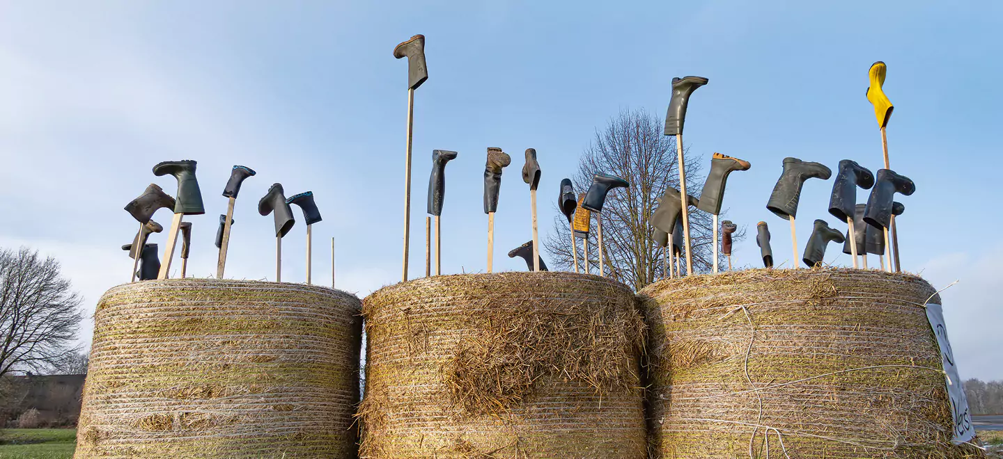 Stiller Protest: Wie einst der Bundschuh sind heute Gummistiefel Symbol bäuerlicher Opposition. Foto: picture alliance / Countrypixel