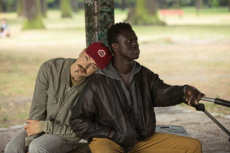 Kurz fühlt er sich unbesiegbar: Francis (Welket Bungué), inzwischen ein Dealer, der es nach eigener Wahrnehmung zu etwas gebracht hat, steht im Schlafsaal seines Wohnheims und wirbt Männer als Drogenkuriere an. Er, der sich lange selbst als „ewiger Flüchtling“ bezeichnet hatte, verbittet sich nun diese Zuschreibung. „Schaut mich an“, sagt er zu den Männern, „ich bin hier: schwarz, stark, furchtlos. Ich habe eine teure Jacke an, fahre ein deutsches Auto, habe eine deutsche Freundin. Ich bin der deutsche Traum. Ich bin Deutschland.“ Wie flüchtig dieses Gefühl des Angekommenseins ist, zeigt sich schon wenige Minuten später. Da lacht der Kopf der Drogenbande Reinhold (Albrecht Schuch) Tränen über Francis’ Worte: „Ich bin Deutschland. Das ist echt gut.“ Am Abend bringt er seinem Freund einen Anzug mit, bevor sie zu einer Party gehen: Es ist ein Affenkostüm.