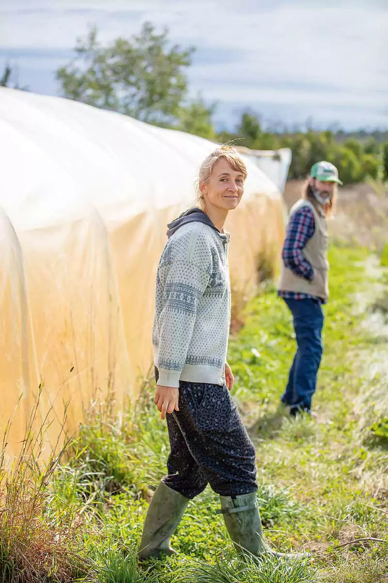 Biologisch produzierte Produkte sind demnach jedoch weiterhin eine Nische – und Kleinsthöfe, wie der von Anne Kaulfuß und Deacon Dunlop, eine Art Nische in der Nische. Und was lässt sich genau hier für die Zukunft der Landwirtschaft lernen? „Wir wollten einen Unterschied machen und etwas Gutes tun“, sagt Dunlop. „Es ist wundervoll zu sehen, wie man ein Stück Natur kreiert hat und immer mehr Tiere kommen. Sogar die blauschwarze Holzbiene und Moorfrösche wohnen seit diesem Jahr bei uns.“ Trotz ihres Biologiestudiums mussten sich die beiden aber erst mal in die Materie einlesen, denn an den Universitäten wird bisher wenig über alternativen Landbau gelehrt. Schnell sei ihnen klar geworden: „Wir müssen nicht die Pflanzen, sondern den Boden füttern.“