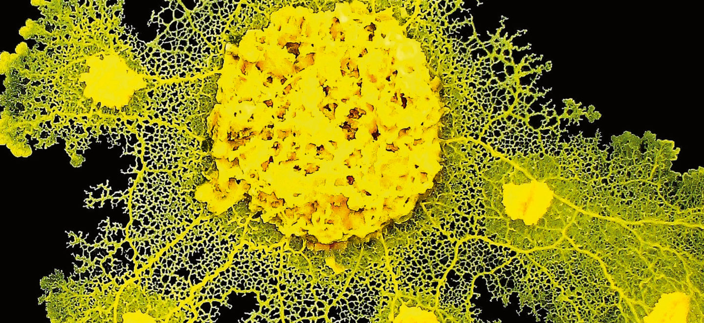 Blickt man auf die Forschungsgeschichte des Blobs, könnte man fast Mitleid mit dem armen Ding haben, denn: „Die Botaniker meinten, die Zoologen müssten ihn erforschen, die Zoologen dachten dasselbe von den Botanikern“, sagt Dussutour. Nachdem sich Wissenschaftler lange nicht einig waren, welchem Fachgebiet Physarum polycephalum zuzuordnen sei, führte es ein Leben am Rande der Disziplinen. Im 19. Jahrhundert war erstmals von einem „Pilztier“ die Rede, im 20. Jahrhundert sprach man von Myxomyceten, sogenannten Echten Schleimpilzen. Ein irreführender Begriff, denn damit ist eben nicht der Pilz gemeint, sondern ein einzelliger Organismus, von denen Physarum polycephalum nur eine Art ist. Erst 2015 wurde sein Genom vollständig entschlüsselt.