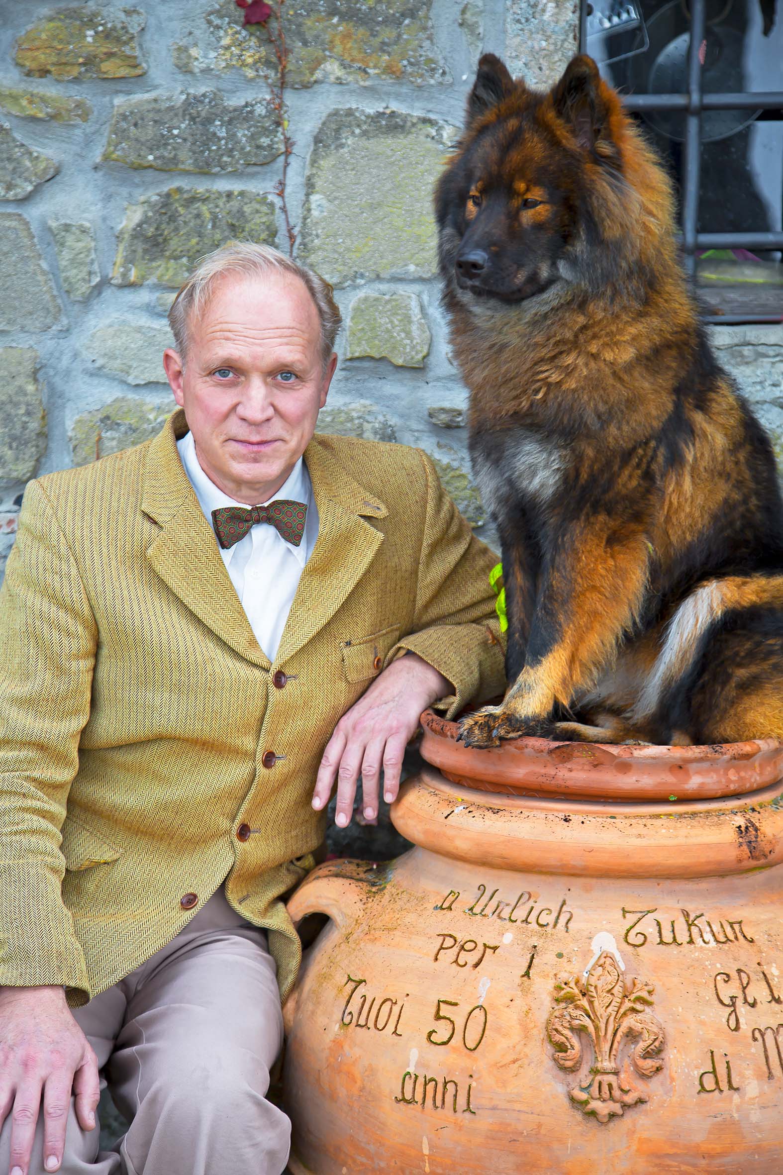 Ulrich Tukur mit seiner Hündin Peppina. Foto: Katharina John