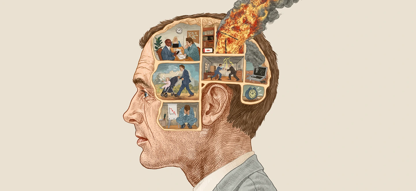 „Zu einem gewissen Grad ist Burn-out tatsächlich gesellschaftlich validiert“, so Burn-out Coach und Professorin für Kulturgeschichte Anna Schaffner. Illustration: Sebastian Haslauer für ARTE Magazin