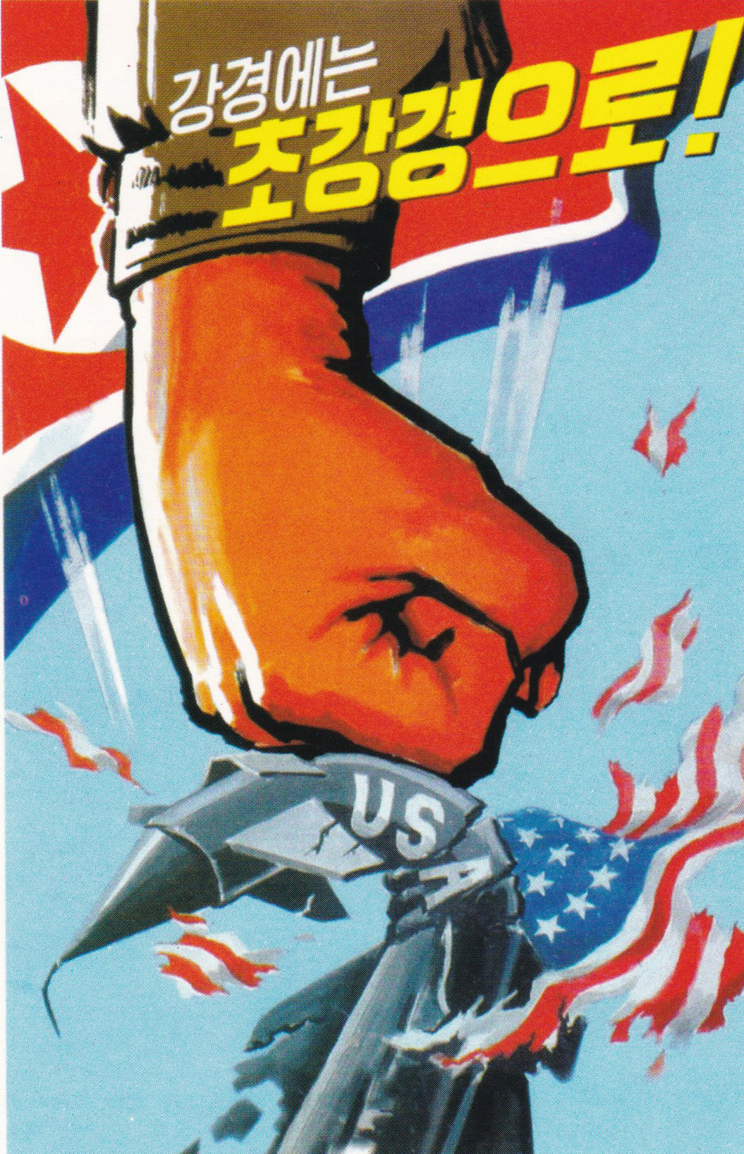 Brifmarken, die aktuelle Raketentests zeigen und antiamerikanische Postkarte_ Property Nik Nowak.klein Explizit USA-feindliche Propaganda in Nordkorea. Foto: Nik Nowak / VG Bild-Kunst / Bonn 2019