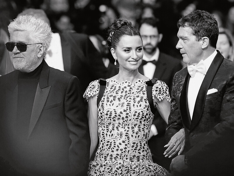 Antonio Banderas neben Pedro Almodóvar und Penélope Cruz in Cannes im Jahr 2017.