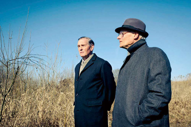 Zweieinhalb Monate findet Erich Honecker (Edgar Selge, r.) mit seiner Frau Margot 1990 Asyl im Haus des Pfarrers Uwe Holmer (Hans-Uwe Bauer) in Lobetal bei Berlin. Die ungewöhnliche Begegnung des Geistlichen mit dem früheren ersten Mann der DDR wird im Film von Regisseur Jan Josef Liefers auch zur Auseinandersetzung mit Repressionen im sozialistischen System. Foto: Conny Klein / ARTE / ZDF