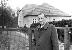 Der echte Pfarrer Uwe Holmer 1990 vor seinem Wohnhaus in Lobetal. Foto: imago / epd
