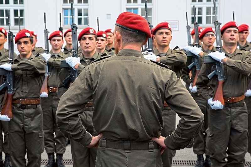 Charles Eismayer (Gerhard Liebmann) mustert seine Truppe Foto: Golden Girls Filmproduktion / ZDF