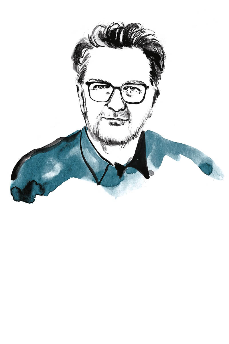 Joachim Huber, Journalist: Der promovierte Theaterwissenschaftler ist vermutlich Deutschlands dienstältester Medienredakteur. 1990 kam er zum Berliner Tagesspiegel. ARTE begleitet er seit dem Sendestart journalistisch. Privat Serienfan und intensiver Mediatheknutzer, muss er für seine andere Leidenschaft den Kanal wechseln: die Spiele des FC Bayern München. Illustration: Elisabeth Moch