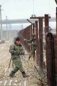 Endspiel: Tschecho-slowakische Einheiten entfernen im Dezember 1989 Stacheldraht an der Grenze zu Öster-