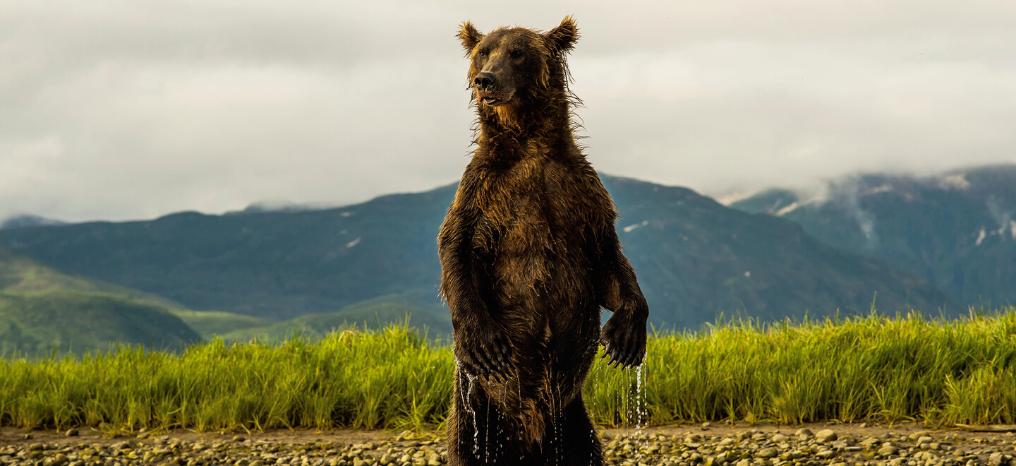 Auf Lachsjagd: Im Gegensatz zu den vegetarischen Grizzlys sind die im Katmai-Nationalpark heimischen Küstenbraunbären Allesfresser. Wenn im Spätsommer dort die Lachse flussaufwärts ziehen, ist Lunchtime im Bärenland. Foto: David Bittner