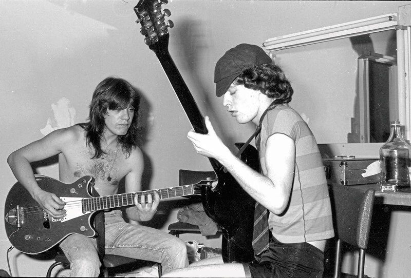 Young (v. l.): Ihre Band AC/DC rockte anarchisch. Foto: Bob King / Redferns / Getty Images