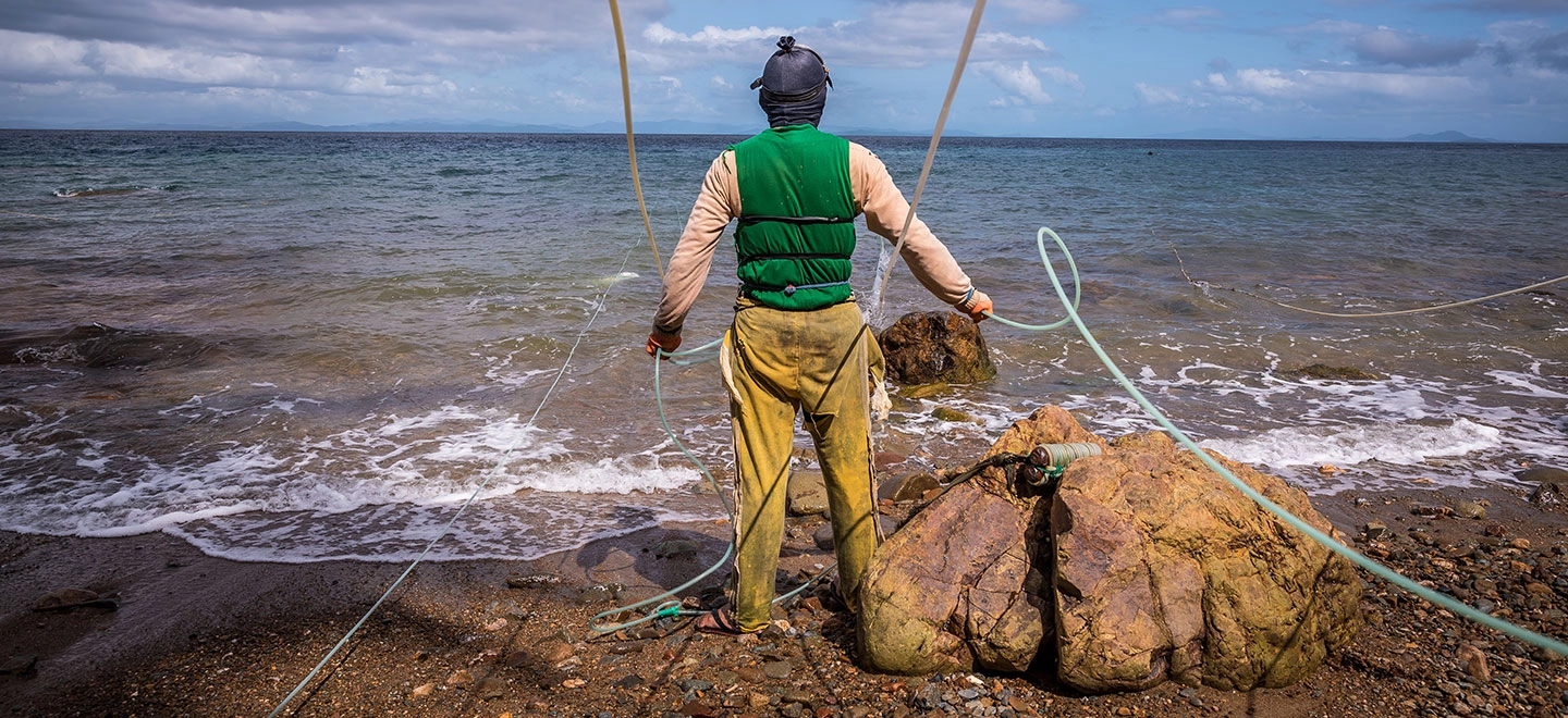 Ein Schürfer macht sich bereit für seine Schicht unter Wasser. Foto: Claudio Sieber