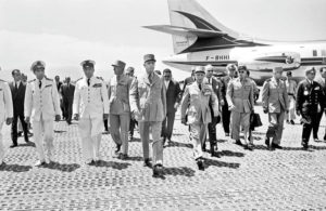 Umkehr: Der Krieg stürzt Frankreich in eine Staatskrise. Charles de Gaulle (3. v. l.; 3), lange Gegner der Loslösung Algeriens, vollzieht ab 1959 als Präsident die Wende.