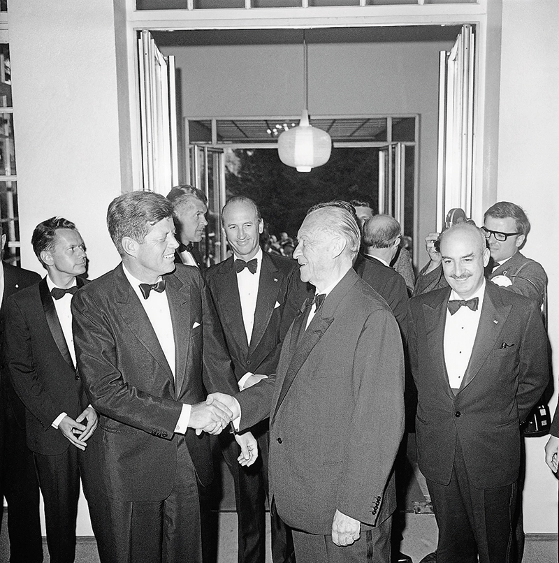 Gleich der Auftakt war ein Hingucker: Lachs im Gurkenmantel eröffnete die Menüfolge im American Embassy Club. Der jugendlich wirkende Gastgeber, US-Präsident John F. Kennedy (1917–1963), wollte damit bei seinem Deutschland-Besuch 1963 in Bonn ein Zeichen des Neuanfangs setzen. Konnte dieser kulinarische Code vom greisenhaften Bundeskanzler Konrad Adenauer (1876–1967) dechiffriert werden? Überliefert ist das nicht, in jedem Fall blieb das Verhältnis der beiden Politiker ähnlich kühl wie der servierte Fisch.