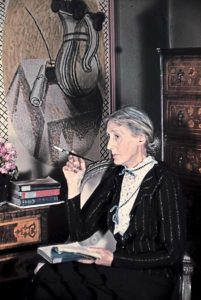 Virginia Woolf (1882–1941) bei der Lektüre im Jahr 1939, zeit-typisch mit Zigarettenspitze. Foto: Freund_Archives Gisèle Freund_IMEC_Fonds MCC_Dist.Rmn _photos Gisèle Freund_ARTE F