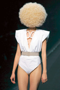 Avantgardistisch: Ein Model präsentiert Martin Margielas Prêt-à-porter-Kollektion im Jahr 2009. Foto: picture-allianc_dpa