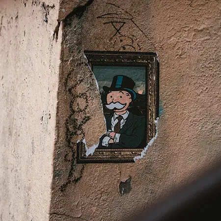 Popkultur: Als Mural ziert Mr. Monopoly eine Hauswand in Frankreich. Foto: Julian Hochgesang / Unsplash
