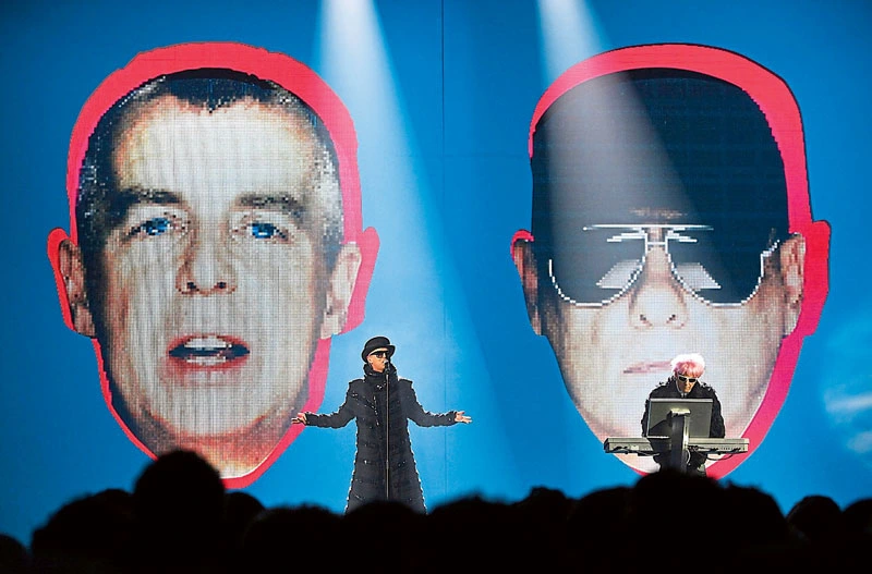 Futuristische Kostüme liebten die Pet Shop Boys Neil Tennant (Foto, l.) und Chris Lowe (Foto, r.) schon immer – hier zu sehen bei einem Live-Auftritt 2009 in London. Foto: Yui Mok/picture alliance/empics