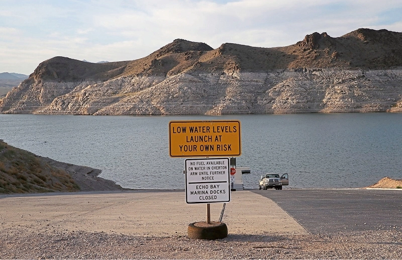 Schilder warnen Bootsfahrer vor niedrigen Wasserständen. Foto: Justin Sullivan/Getty Images