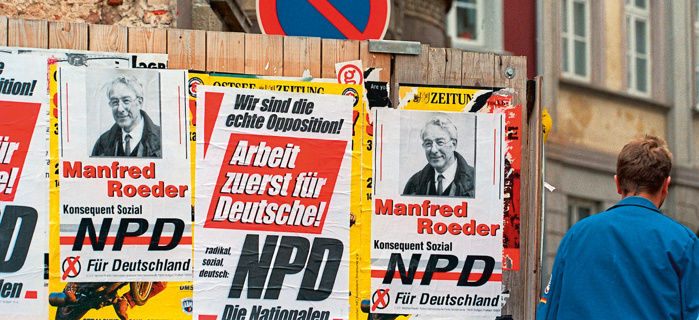 1975, Anfänge: Erste auffällige Reichsbürger-Gruppierung um den rechtsextremen Juristen Manfred Roeder (1929–2014), der nach Haftstrafen 1978 in den Untergrund geht. Anfang der 1980er Jahre verübt die Gruppe um Roeder mehrere Anschläge. Foto: Stefan Sauer / picture-alliance / ZB