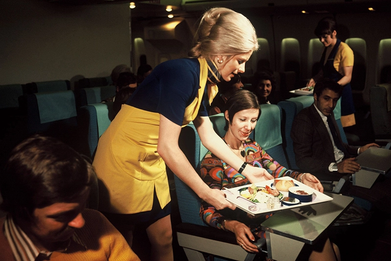 Der Jumbojet machte in den 1970er Jahren das Fliegen für viele erschwinglich. In der damals von der Lufthansa angebotenen Touristenklasse war der Service an Bord der Boeing 747-100 um Längen besser als bei heutigen Billigfliegern. Foto: Deutsche Lufthansa AG / picture alliance / dpa
