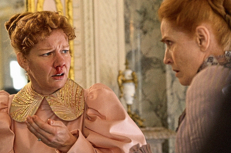 Hüller in „Sisy & Ich“ als Gräfin Irma von Sztáray, die naive Hofdame der österreichischen Kaiserin Elisabeth, die im Licht der Regentin badet und leidet, wenn die sich einen neuen Lieblingsfreund sucht. Foto: Bernd Spauke/DCM/BR
