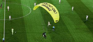 Bilderkampf: Fotos wie das der Greenpeace-Unterstützerin Brigitte Bardot mit Robbenbaby im kanadischen Eis (u.) von 1977 sind wirkmächtig. Der Protest gegen Autos mit Verbrennermotoren bei der Fußball-EM in diesem Jahr geriet dagegen zum imageschädigenden Fiasko. Foto: picture alliance, dpa
