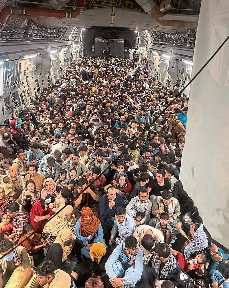 Hunderte Zivilisten verlassen in einem Flugzeug der US Air Force Afghanistan. Foto: U.S. Air Force / UPI Photo via Newscom picture alliance