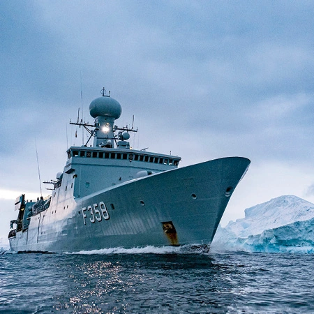 Schutz: Die dänische Fregatte HDMS Triton überwacht zwischen Grönland und den Faröer-Inseln die Infrastruktur am Meeresboden. Foto: Nato