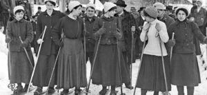 Der Mensch und die Bretter treffen auf den Berg und den Schnee – lange bevor Skifahren ein Freizeitsport für die Massen wurde, galt diese Reihung bereits. Heute blicken viele nostalgisch auf die Anfänge des Alpinismus. Hier zu sehen: Eine Archivaufnahme aus den 1930er Jahren. Foto: Gallica/ARTE