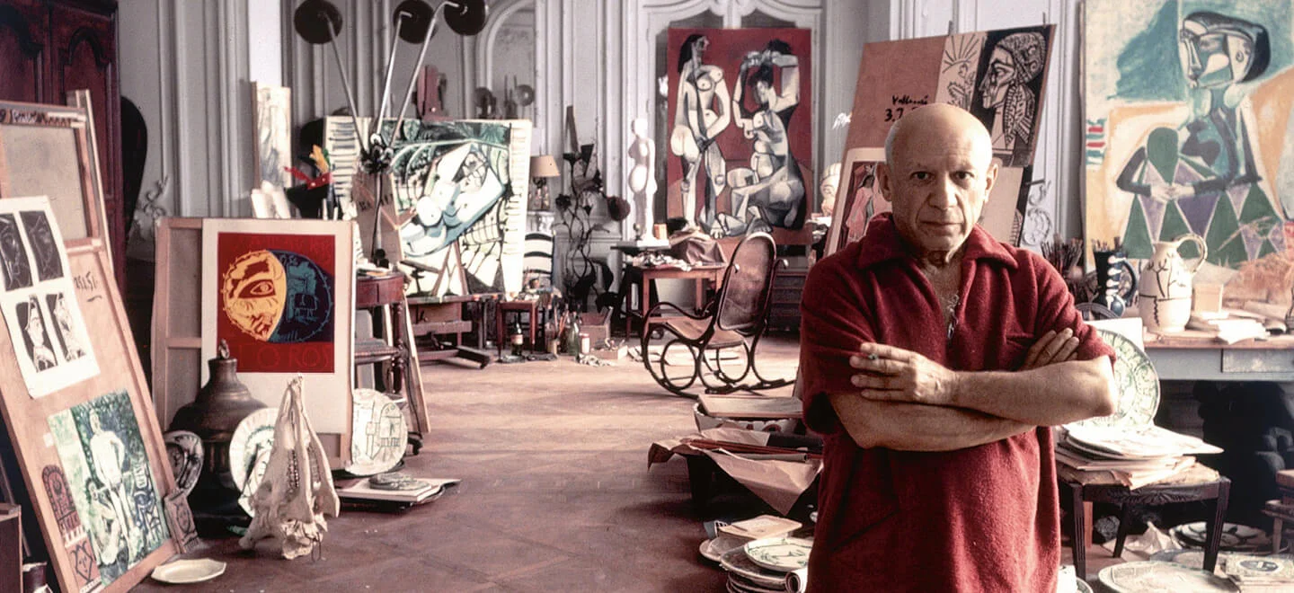 Pablo Picasso posiert im Jahr 1956 in der zum Atelier gewordenen Villa „La Californie“ in Cannes. Foto: Arnold Newman Properties: Getty Images
