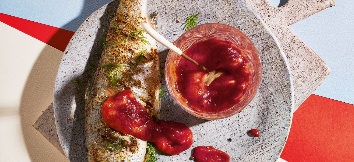 Man müsse schon etwas härter im Nehmen sein, womit sie vermutlich meint: keine deutsche Gewohnheitsköchin, so wie ich. Die Kombination aus sauer, scharf und verknofelt sei speziell, erklärt sie, und holt ein Einmachglas aus dem Küchenschrank. Sie gibt mir von dem Inhalt zu kosten – und tatsächlich: Der Geschmack ist herb-würzig, ungewohnt, anders – und ziemlich gut. Ich gestehe ihr, warum ich bei ihr geklingelt habe: Mein erster Versuch, die in Georgien omnipräsente Würzsauce zu kochen, war gescheitert, weil ich keine Vorstellung von dem Ergebnis gehabt hatte. In der Sendung sieht es ganz einfach aus, aber ich hatte die Mirabellen in zu viel Wasser gekocht, so dass meine Sauce zu flüssig und damit langweilig wurde. Apropos Mirabellen: Das „georgische Ketchup“, wie Tkemali genannt wird, besteht nämlich nicht aus Tomaten, sondern aus Kirschpflaumen, daher die säuerliche Note: Pflaumen waschen, in einem Topf mit Wasser (nur so viel, dass sie knapp bedeckt sind) sanft köcheln, bis sie weich sind. Abkühlen lassen und den gesamten Topfinhalt durch ein Sieb oder die Flotte Lotte passieren. Kerne und Fruchthaut bleiben zurück. Knoblauch schälen und pressen, Kräuter hacken oder mörsern. Passierte Sauce erneut erhitzen und unter Rühren Kräuter hinzugeben. Mit Salz und Peperoni abschmecken – und, ein Tipp aus der „Zu Tisch“-Sendung, mit etwas Zucker (oder Agaven-Dicksaft) süßen. Aufkochen und die Sauce in eine sterilisierte Flasche füllen. Sie hält mindestens ein Jahr. Guten Appetit!