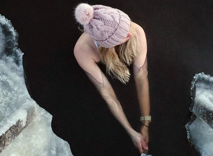 Auch wenn es etwas Überwindung kostet: Auch Kältereize, etwa bei der Dusche am Morgen oder gar durch ein Eisbad im winterlichen See, können den Vagusnerv stimulieren. Der starke Reiz löst eine Stressreaktion des Körpers aus, die der Parasympathikus über eine langsamere Herzfrequenz zu regulieren versucht. Wichtig ist es, sich vorsichtig heranzutasten. Eisbäder sollten nur nach Rücksprache mit einem Arzt und nach guter Vorbereitung genommen werden, etwa durch regelmäßiges kaltes Duschen über den Zeitraum von ein paar Wochen. Wer möchte, kann auch mit kalten Gesichtsbädern starten und sich hierbei sogar noch den angeborenen Tauchreflex zunutze machen, indem er den Kopf kurz unter Wasser hält. Dies verbessert die Herzratenvariabilität erheblich und macht gute Laune, wie Sylvain Laborde nachgewiesen hat. Er selbst hat für stressige Zeiten immer eine Schüssel Eiswasser auf seinem Schreibtisch stehen.