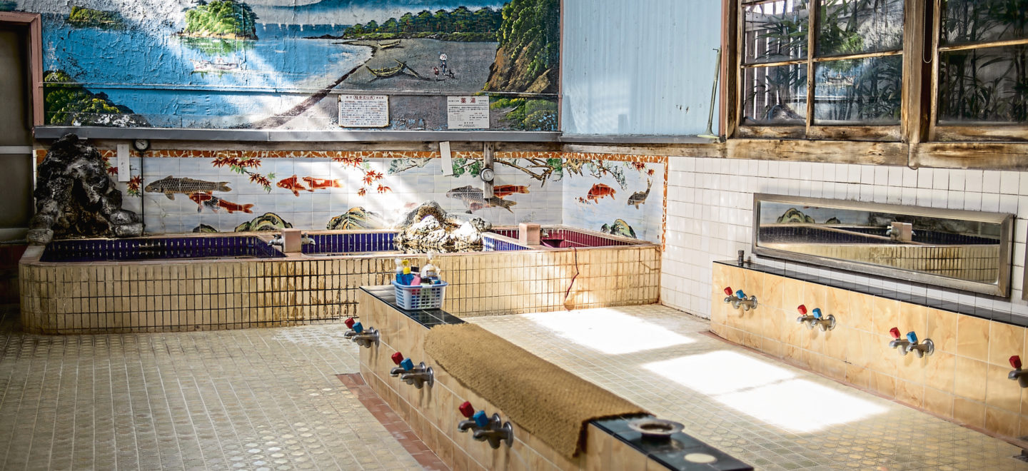 Bis heute hat sich unter Japanerinnen und Japanern ein Verhältnis zu Körperlichkeit und Sexualität gehalten, das einem auf den ersten Blick unverblümt, bisweilen kindlich vorkommen mag. Es zeigt sich in Tokios florierender „Love Hotel“-Branche, in pornografischen Manga-Comics und shintoistischen Fruchtbarkeitskulten wie dem jährlichen „Fest des stählernen Penis“. Gleichzeitig sind Händchenhalten oder gar Schmusen in der Öffentlichkeit verpönt. Damals wie heute lassen sich die Japaner zwischen Permissivität und Prüderie nicht recht einordnen. Zu Teilen ist dieser Widerspruch auf den gesellschaftlichen Wandel der Meiji-Restauration (1868–1912) zurückzuführen. Was „normal“ war und was als „tabu“ galt, veränderte sich in diesen Jahrzehnten genauso rasant wie die Politik und die Industrie. Zu den neuen Tabus gehörte auch das Gemeinschaftsbad: Männer und Frauen sollten einander nicht mehr nackt sehen, geschweige denn gemeinsam baden. Das Takara-Yu öffnete 1927 seine Tore. Unterteilt in zwei Bereiche, lockte es Männer wie Frauen zum täglichen Bad. Die Geschlechtertrennung hat den Eigentümer allerdings vor ein Problem gestellt: Wer darf den einzigartigen Garten benutzen, der nur über eine Seite des Bades zugänglich ist? An dem Koi-Teich mit seiner Wasserfontäne aus Steinen des Fuji-Berges möchten alle gerne sitzen. Im Sinne der Gleichberechtigung hat das Takara- Yu für seine Gäste deshalb eine salomonische Lösung gefunden: Woche um Woche werden die Seiten getauscht, sodass Frauen und Männer abwechselnd in den Genuss der grünen Oase kommen.