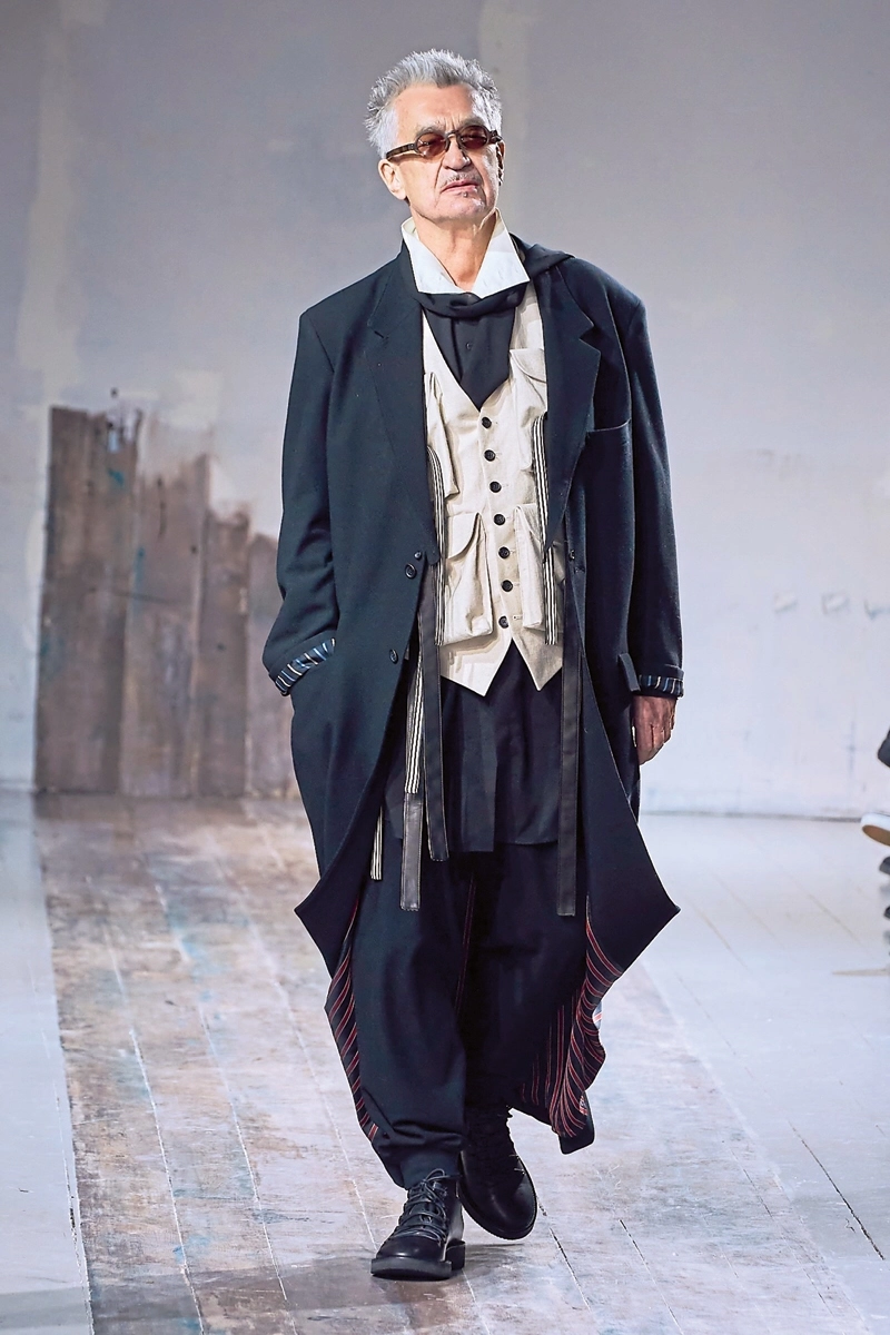 Wenders 2024 als Model für Yohji Yamamoto bei einer Modenschau in Paris. Den japanischen Designer hatte er 1989 in „Aufzeichnungen zu Kleidern und Städten“ porträtiert. Foto: Francois Durand / Getty Images