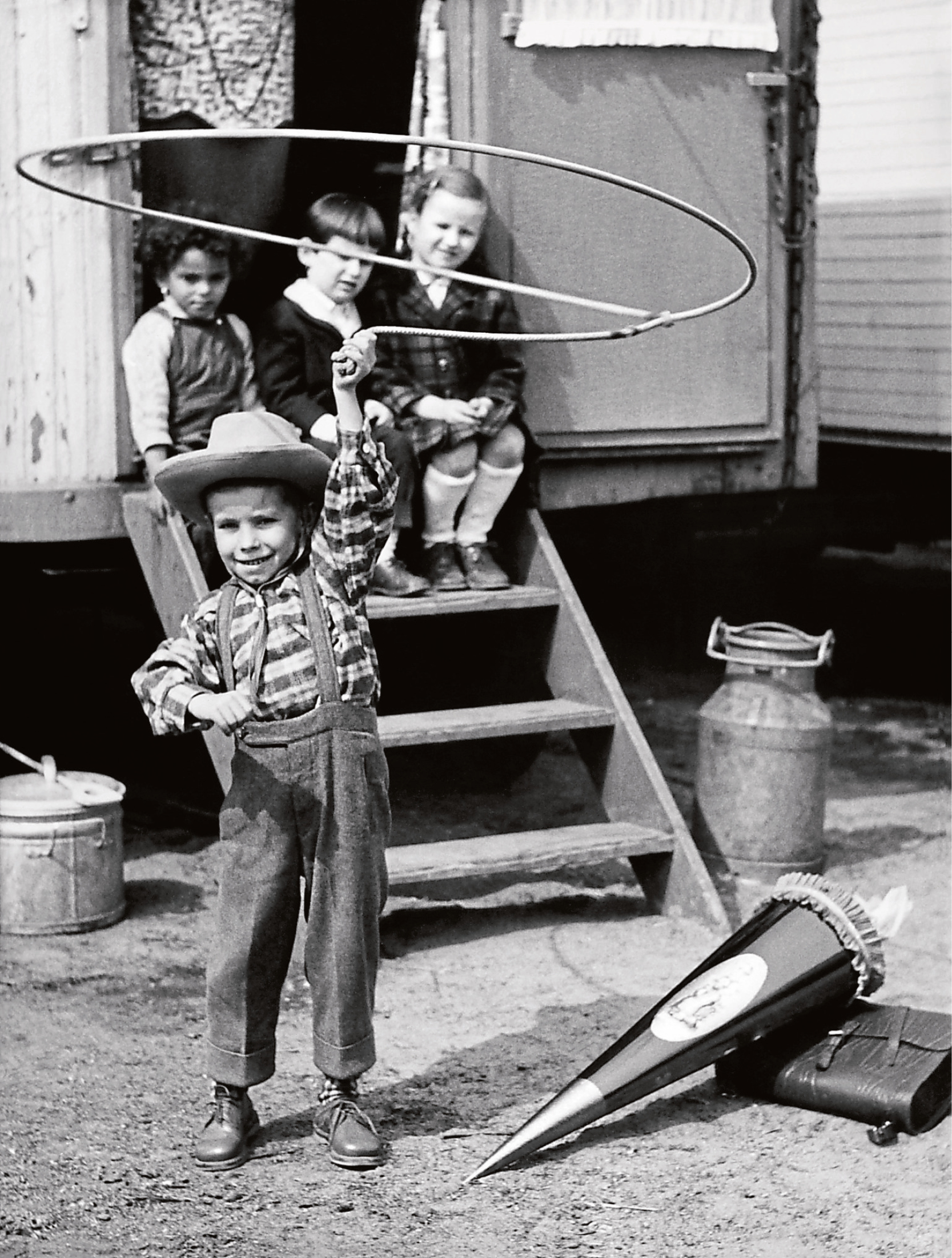 Ein Nachwuchs-Cowboy schwingt 1958 sein Lasso. Foto: Gamma Keystone / Getty Images