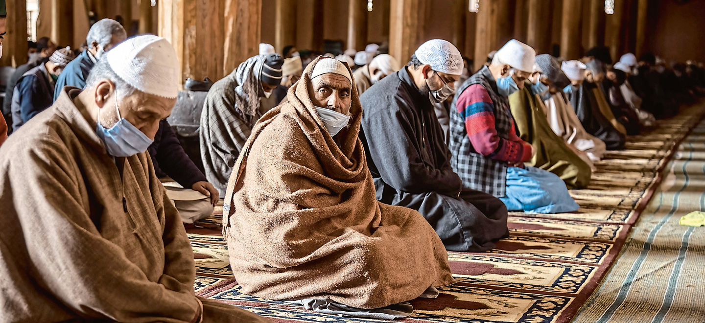 Muslime beim Freitagsgebet in der Region Kaschmir, deren Sonderstatus Indiens Premierminister Modi 2019 aufhob. Foto: Idrees Abbas/SOPA Images/LightRocket/Getty Images