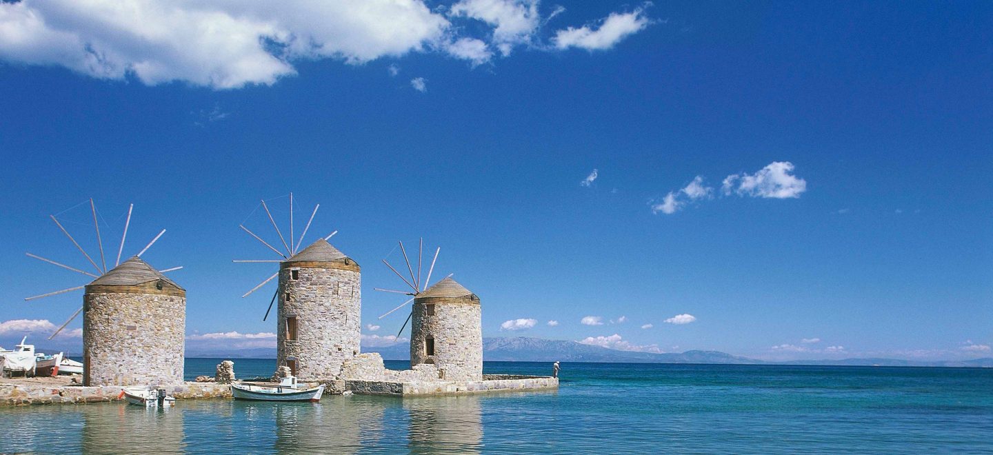 Als Teil der Nördlichen Ägäis liegt Chios nur wenige Kilometer vom türkischen Festland entfernt. Über der Insel liegt der Duft von wildem Fenchel, zu sehen sind Zitronen- und Orangenhaine, im Süden Mastix- und Olivenbäume, dazwischen kleine mittelalterliche Dörfer. Im Norden ragen Berge bis zu 1.300 Meter hervor, die Hochebenen wirken kahl. Die meisten Buchten – Stein- und Sandstrände gesäumt von schroffen Felsen – scheinen unberührt. An zahlreichen Ecken von Chios zeigt sich Griechenland von seiner urigsten Seite.
