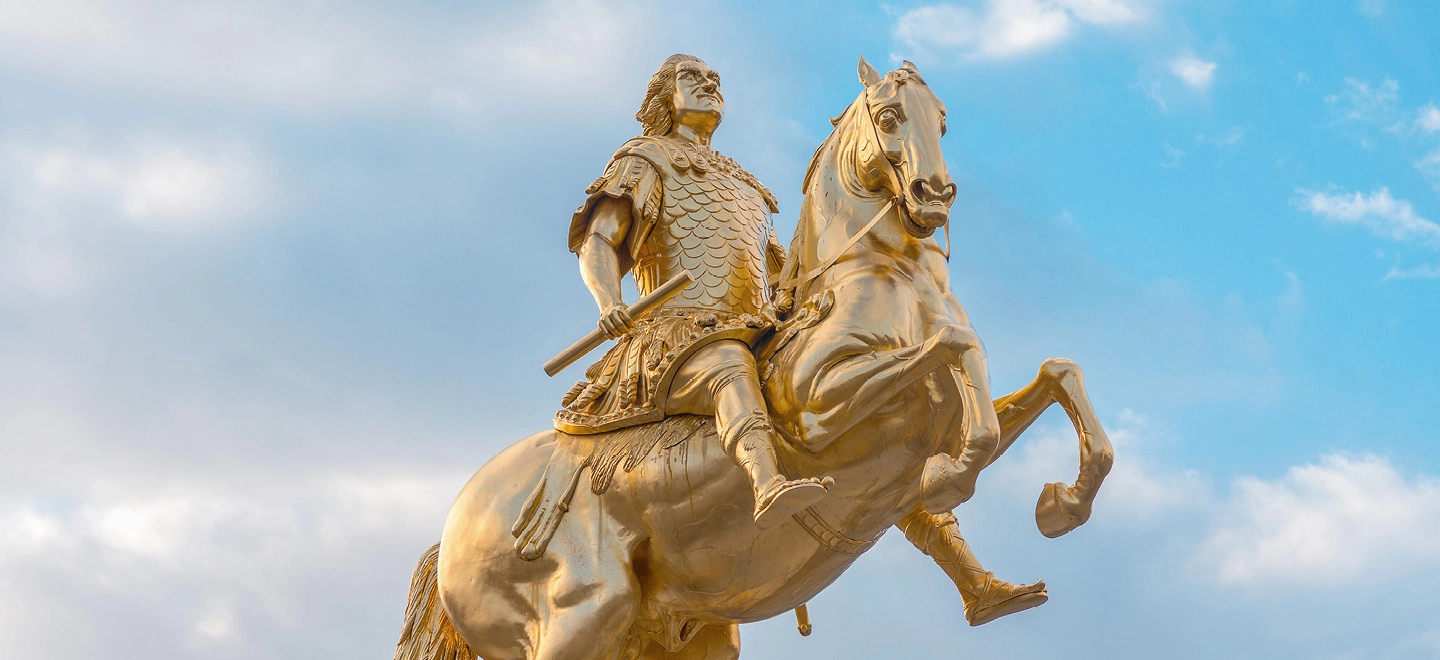 Glanzvoll: Das Reiterstandbild von August dem Starken gehört wie der Zwinger zu Dresdens barockem Kulturerbe. Foto: Markus Beck / Zoonar / picture alliance